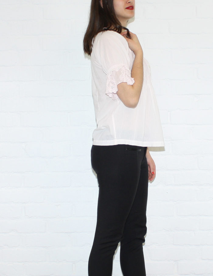 Blus, Överdelar, Rescue Collection, UtförsäljningEn blus med lite kortare ärm och där ärmslutet har en liten volang. Bak i nacken är ett silverfärgat tryck av en fjäril. Märke: Cream Storlek: S Passform: Normal Modellen är 174 cm lång, bär normalt S/M och har på bilden S.50 kr -