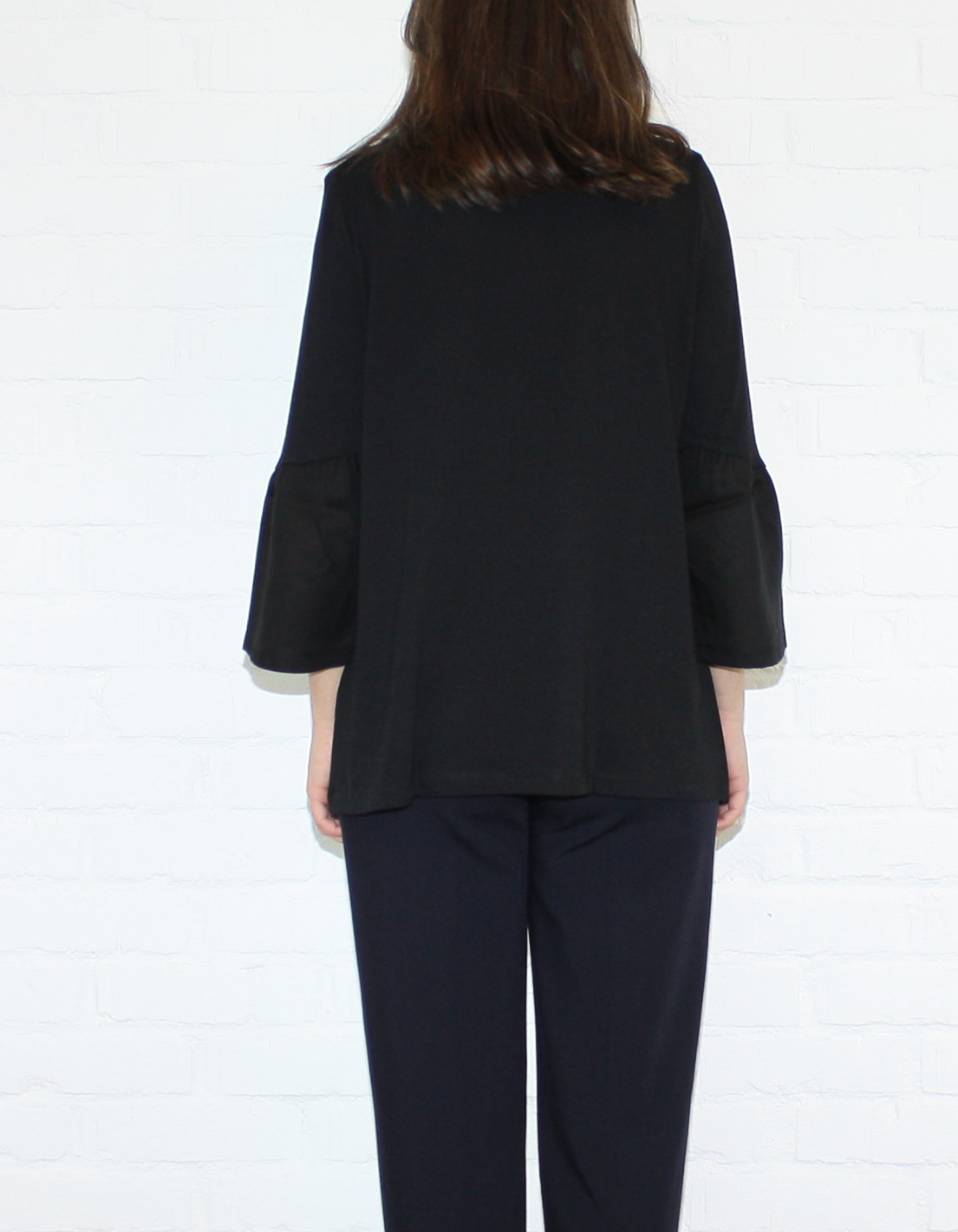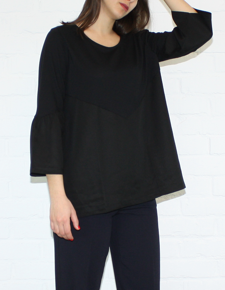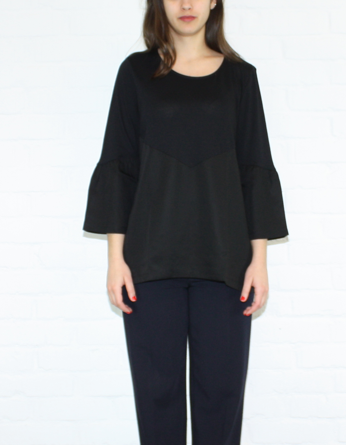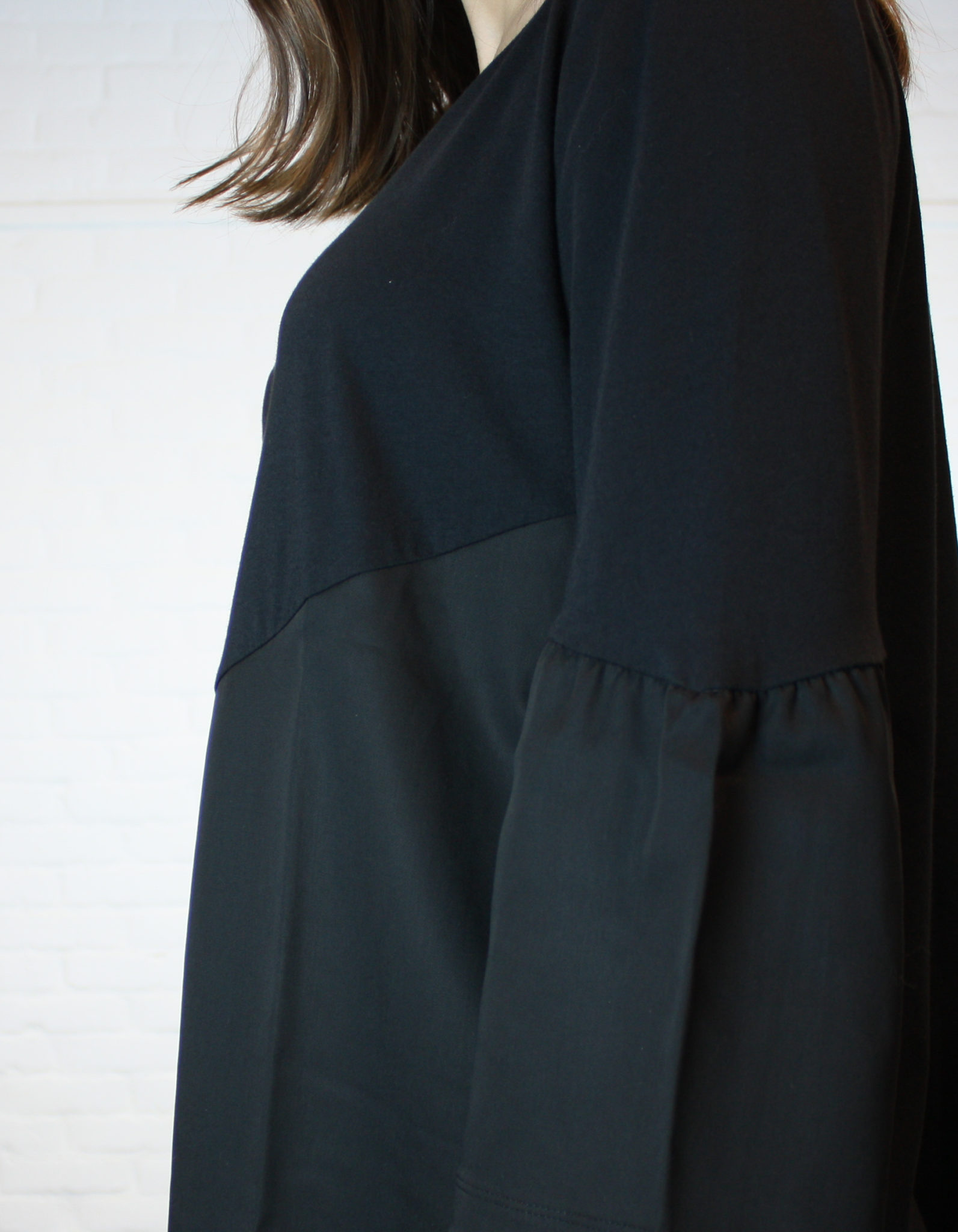 En feminin och klassisk tröja med vida ärmar, som dessutom blir mer intressant på grund av de kontrasterande materialen i bomull och tencel.