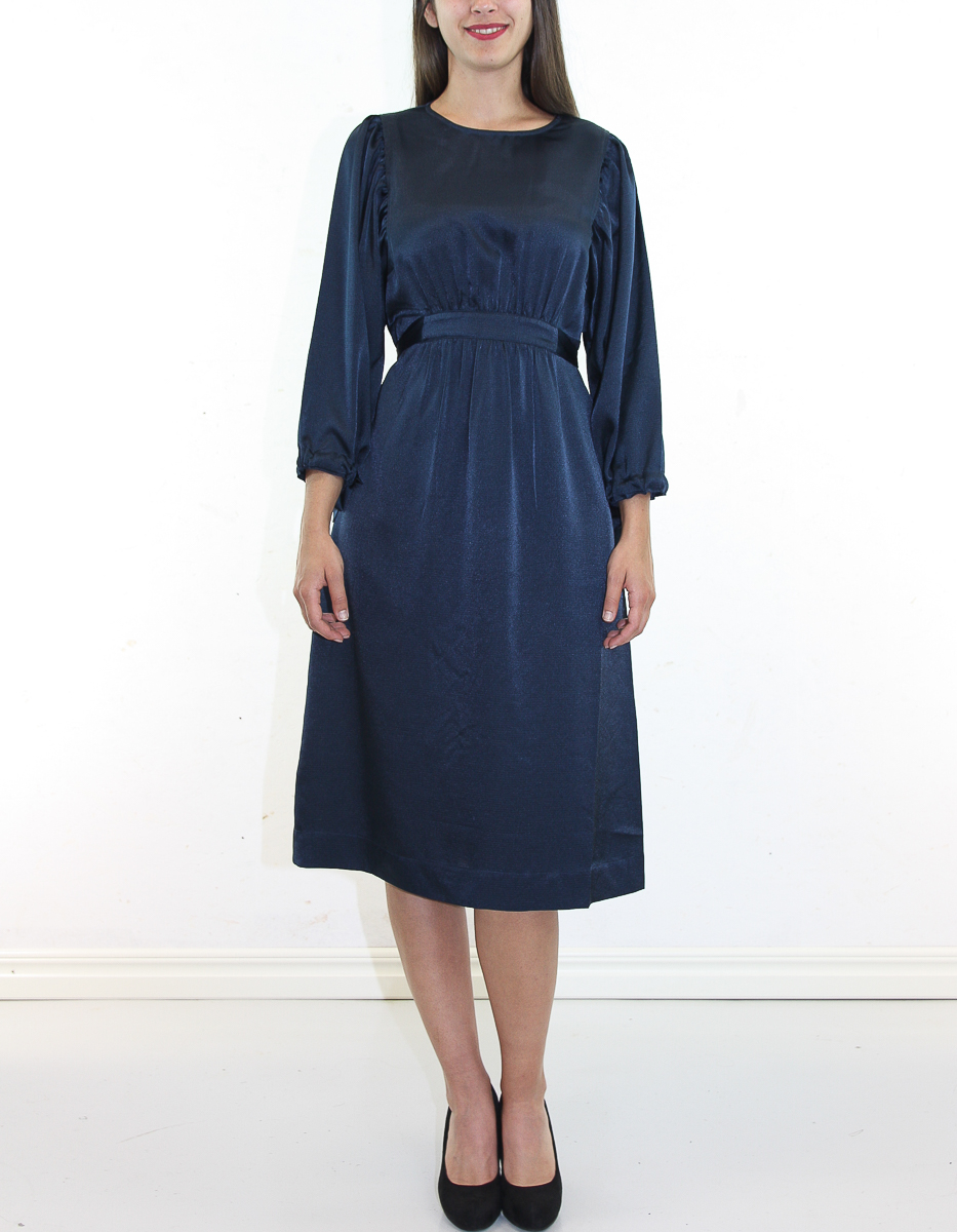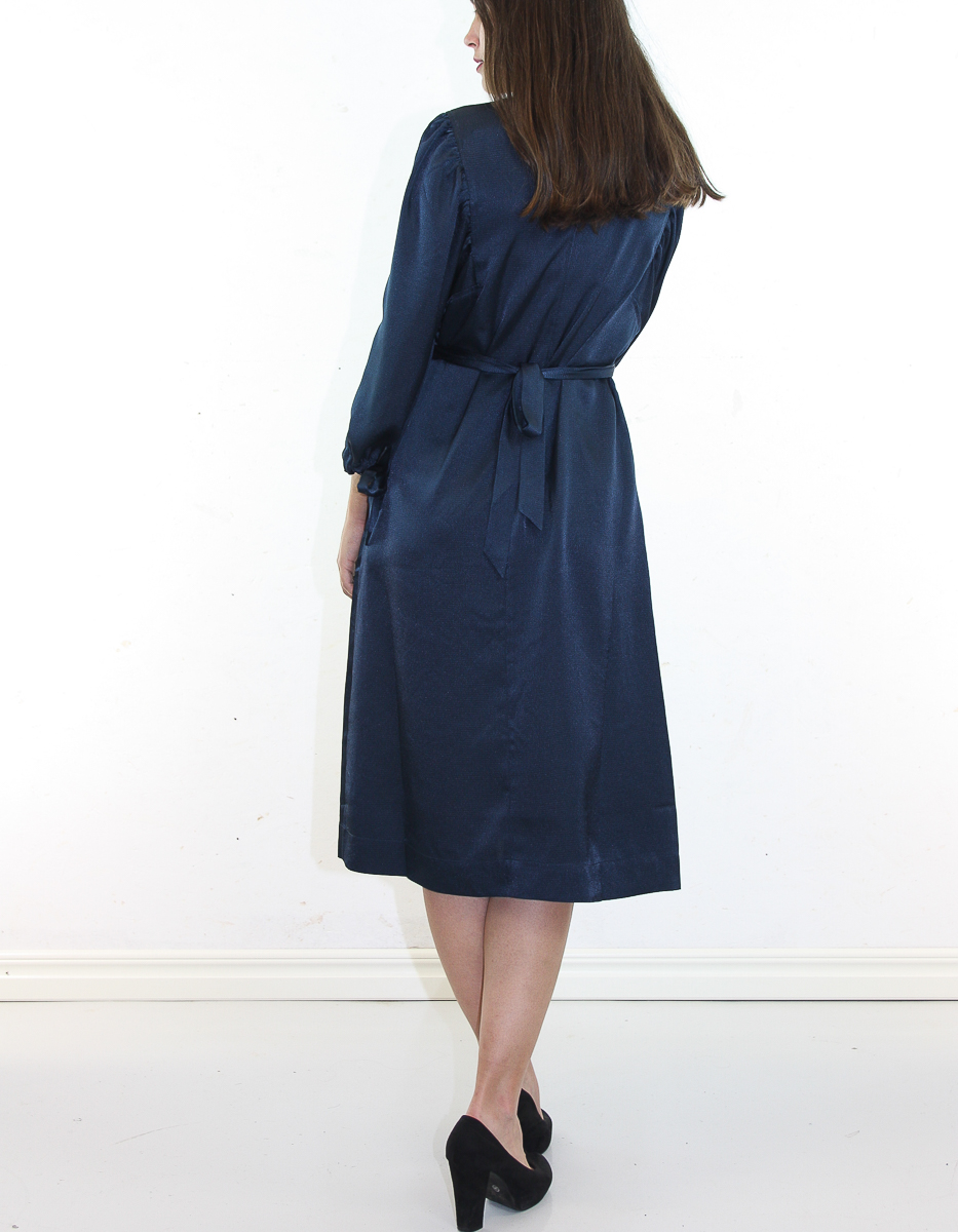 Fin djupblå färg, dock blir tyget lätt ”elektriskt”. I övrigt fin klänning