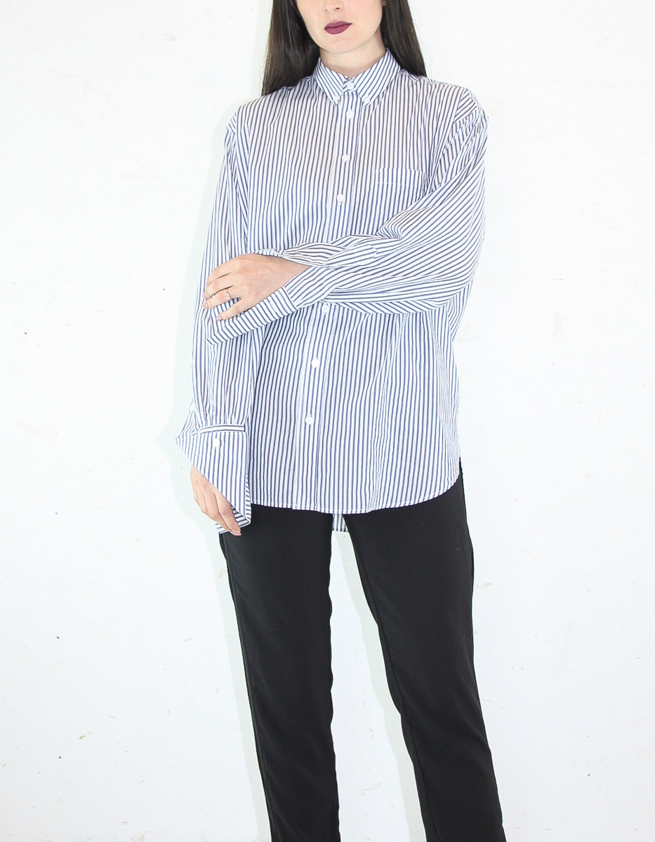 Superfin lite dressad skjorta som passar till det mesta. Är oversized så en M till mig som har M/L (175cm lång) blev perfekt då jag ville ha den stor. Kul men ärmarna som är lite stora men som kan stylas på lite olika sätt. Så en bra variant på dressad skjorta som ändå blir något mer än en “vanlig” randig skjorta.
