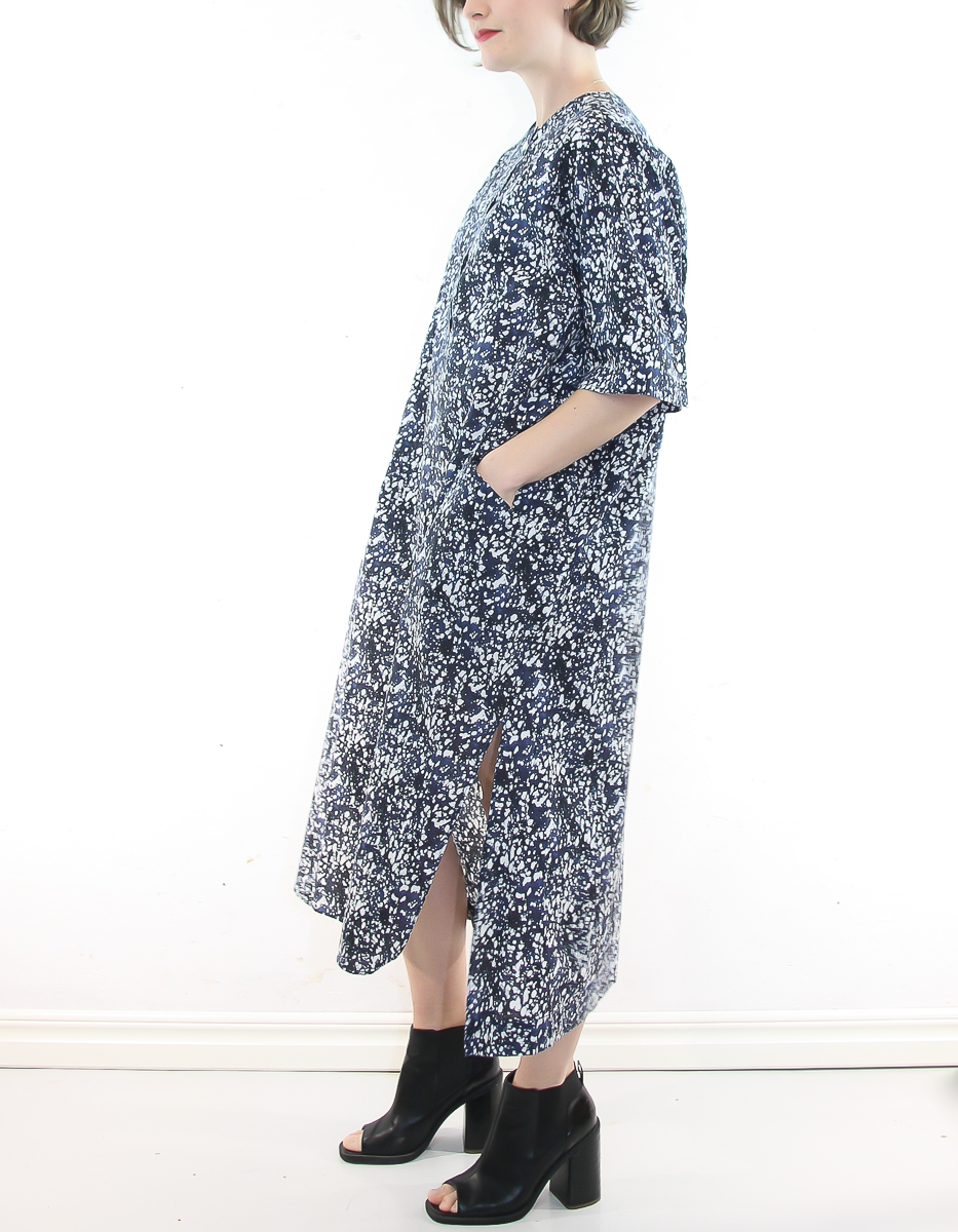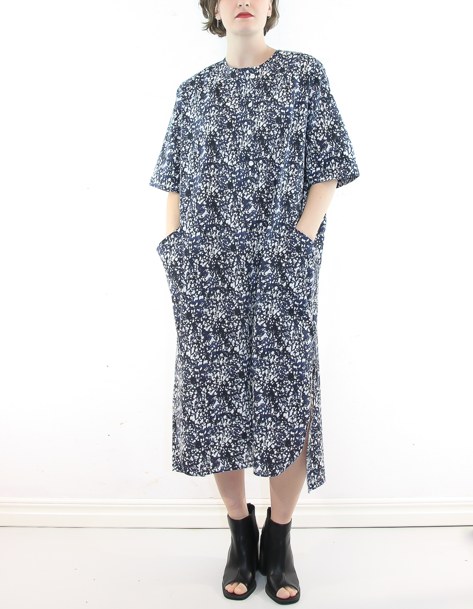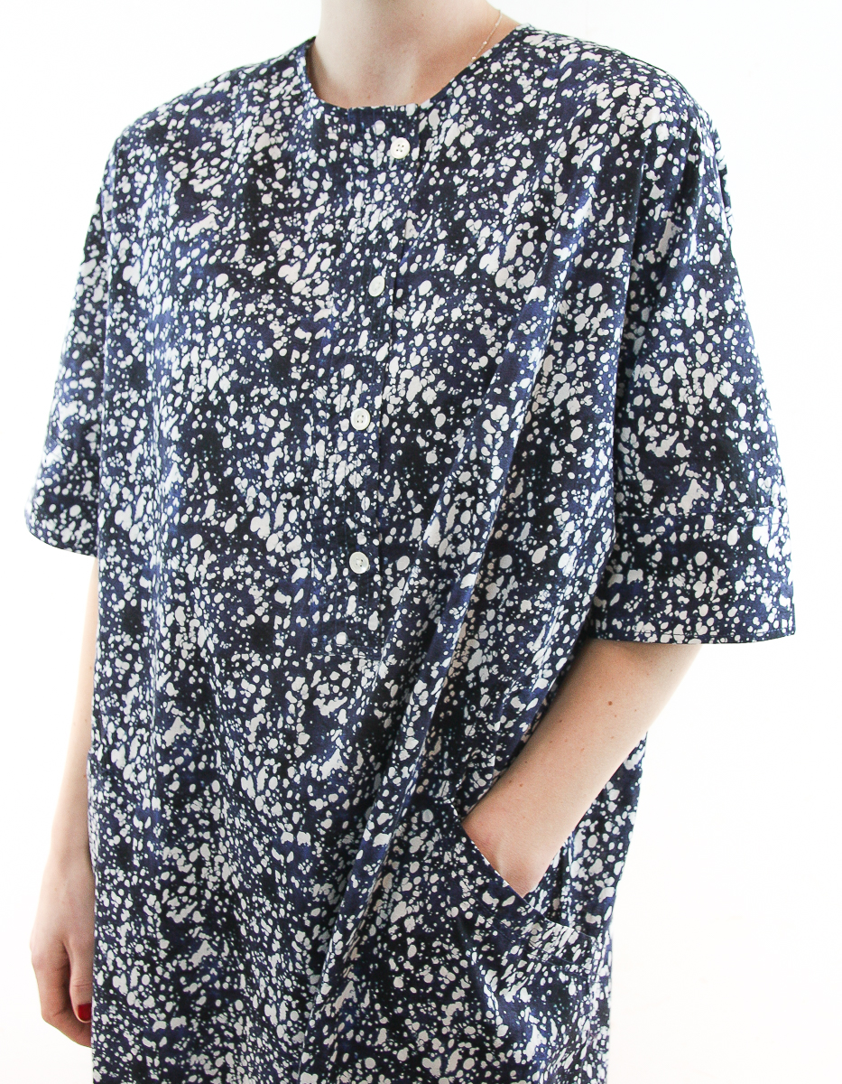En boxig kaftan-inspirerad klänning perfekt för varmare årstider. Utformad i luftig bomull och med en lekfull riktning av sömmarna. Och hurra – den har fickor!