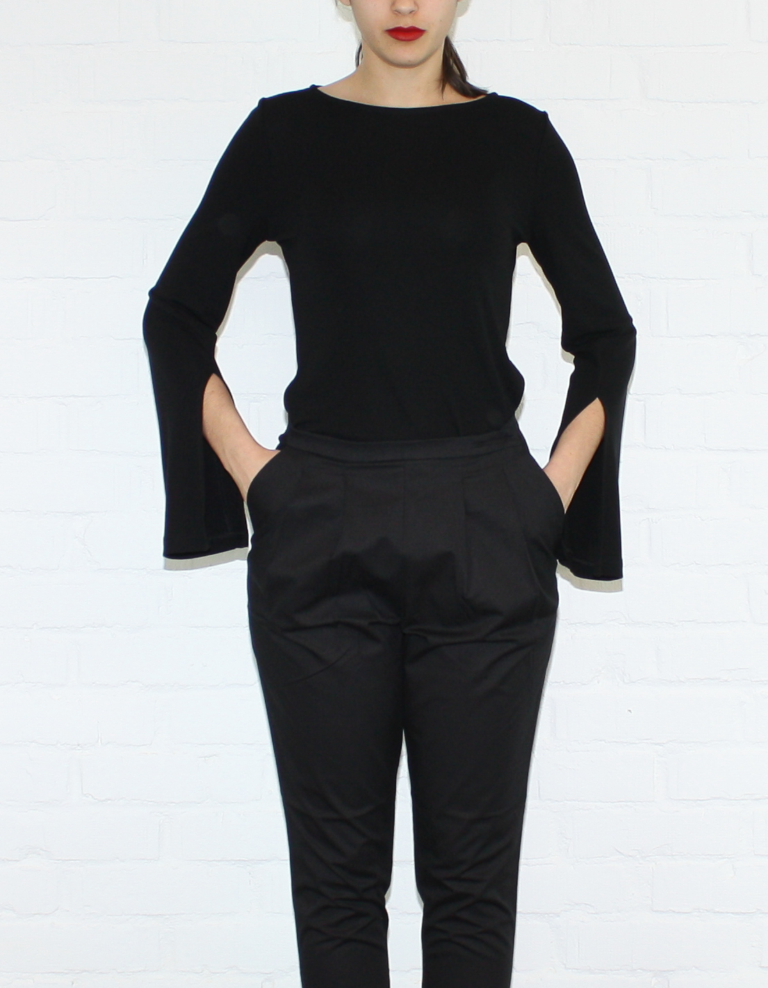 Denna tröja med slitsade ärmar är framställd från det hållbara, cellulosabaserade tyget Lyocell från Tencel®. Tyget är svalt och har en böljande känsla, men kan upplevas lite tungt.