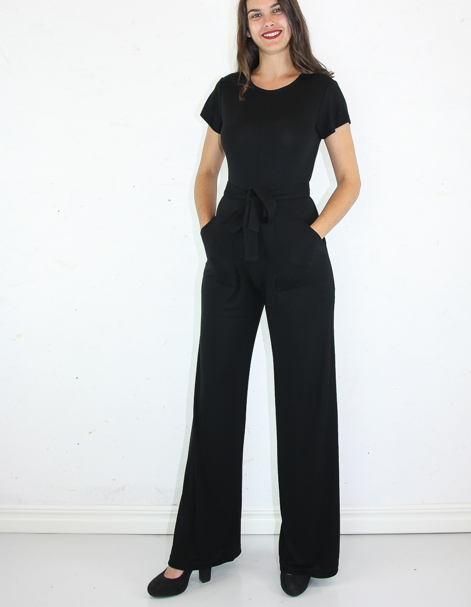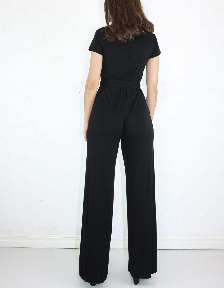 Är du trött på svarta klänningar? Här är alternativet! Denna jumpsuit är gjord av Tencel® (baserat på Cellulosa) som är ett mer hållbart alternativ än viskos. Byxdressen har långa, raka byxben och en mer åtsittande topp med t-shirtärm. Den stängs med dragkedja på baksidan och du kan knyta det extra bältet runt midjan om du vill.