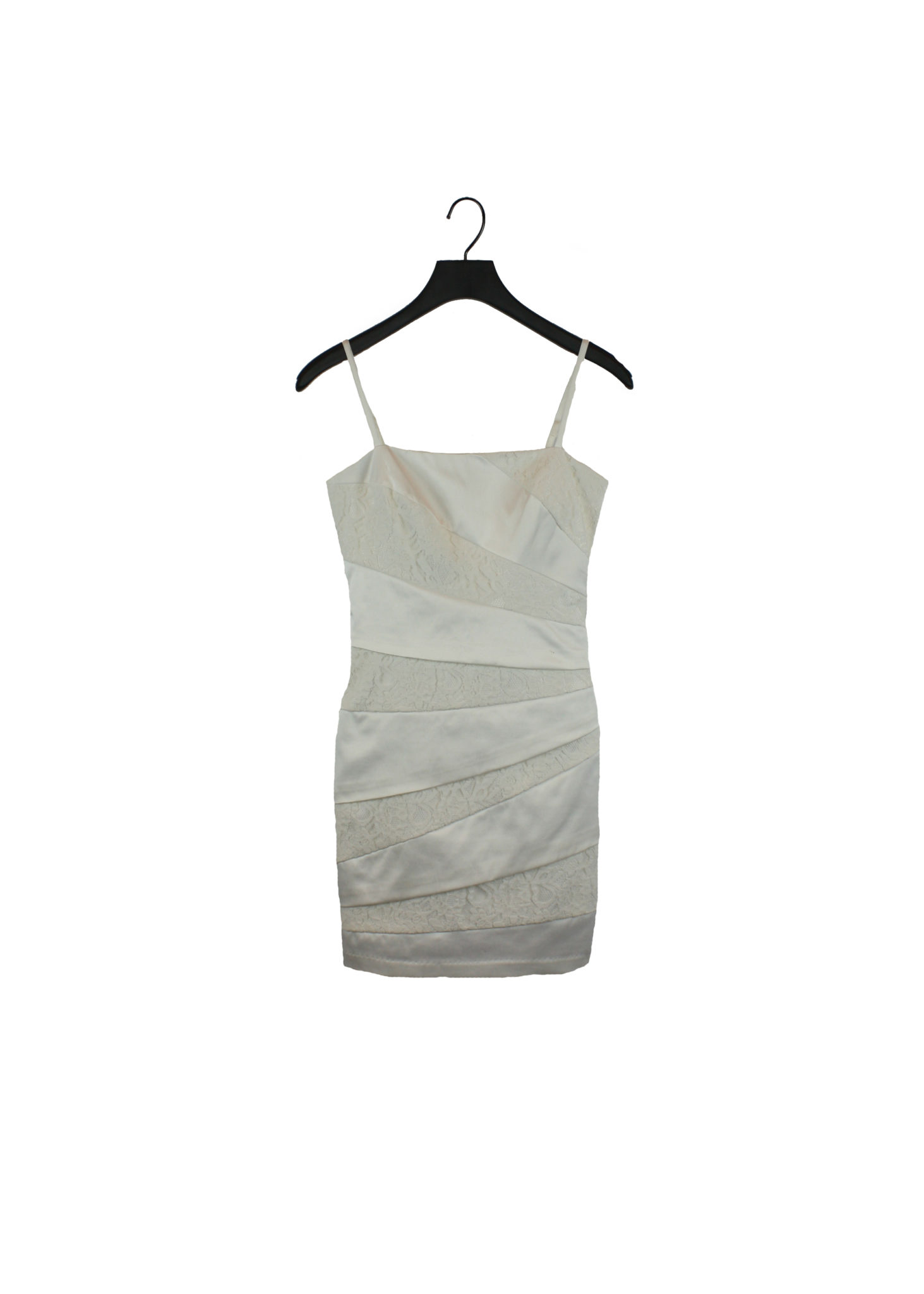 Vit klänning med spetsdetaljer och smala, justerbara axelband samt dragkedja i sidan. Passar perfekt på midsommarfesten, studenten eller något annat tillfälle då man vill vara lite fin.