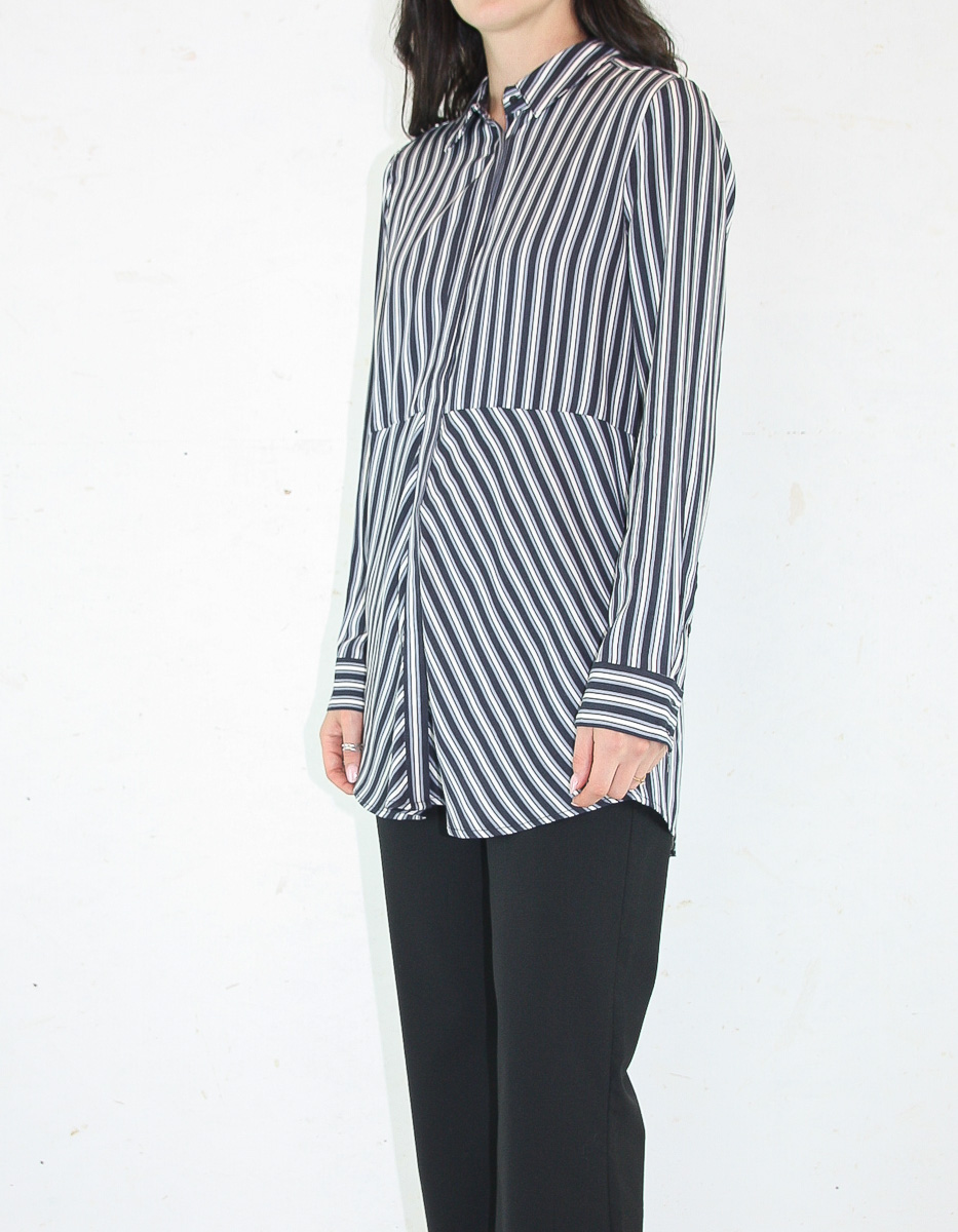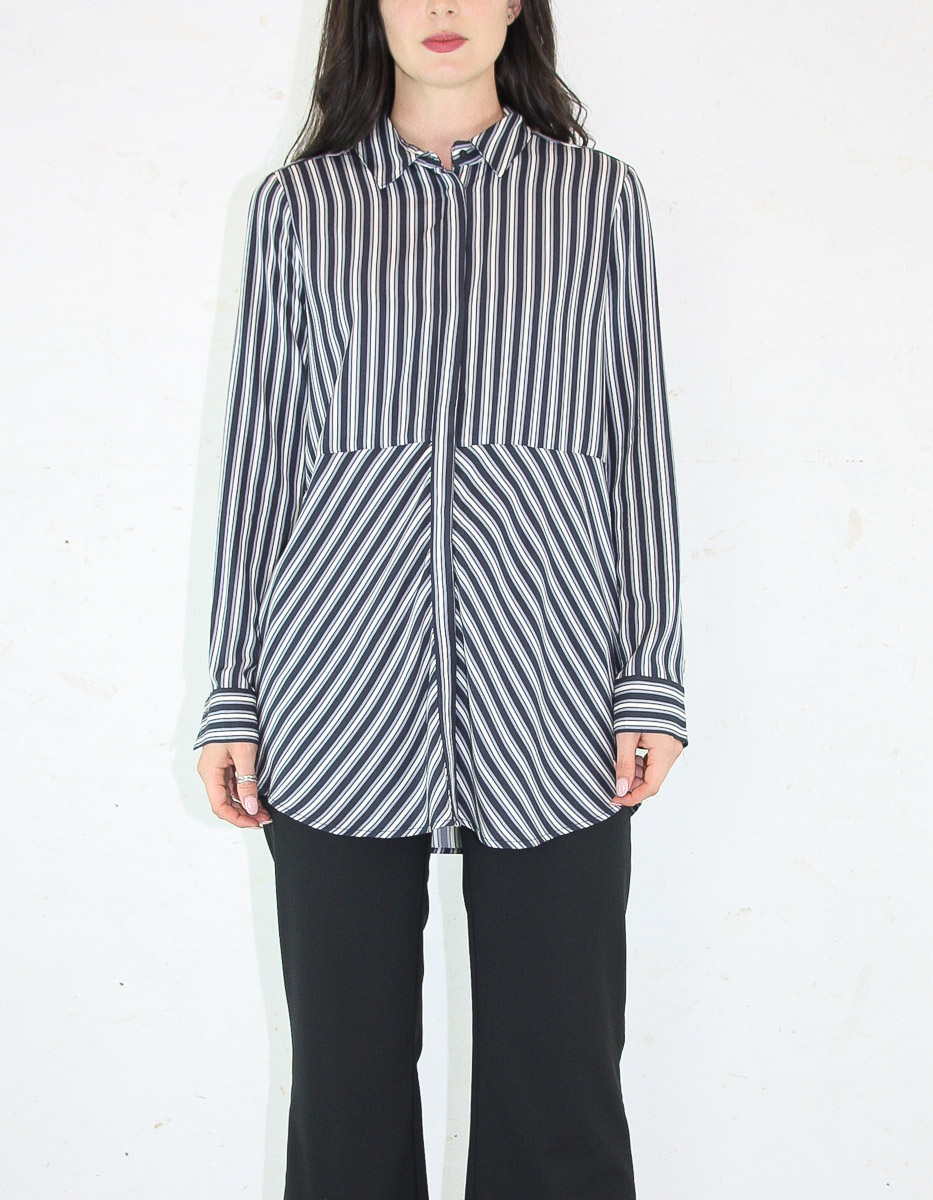En rak skjorta i längre modell med ett lekfullt randigt mönster.
