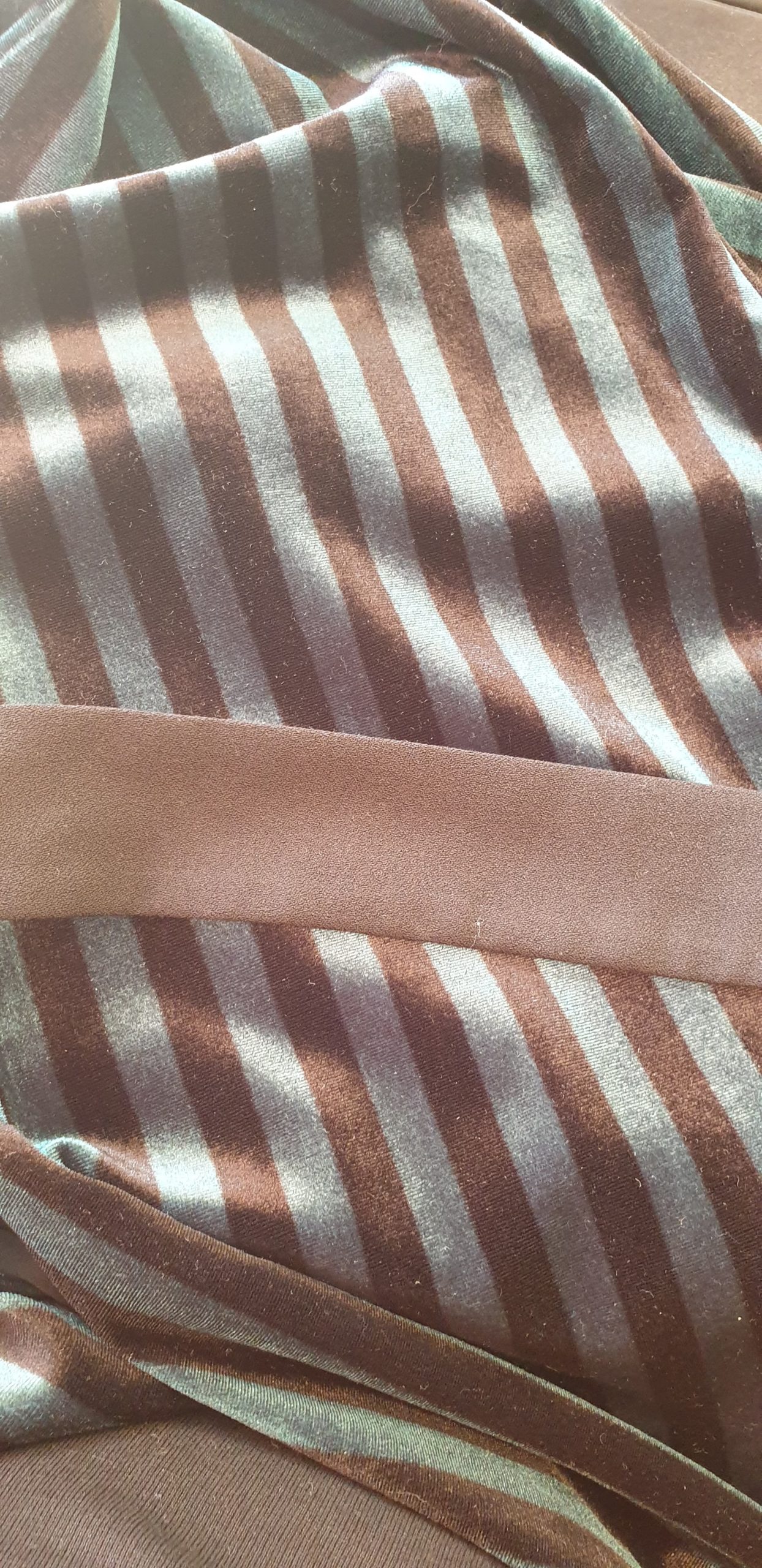 En kavaj i en mjuk och stretchig sammet med normal passform, detaljerade ränder och ett matchande bälte i midjan.