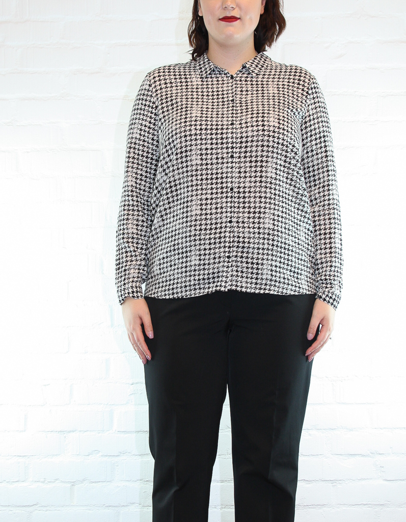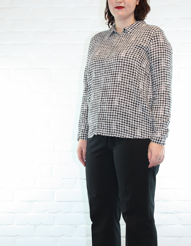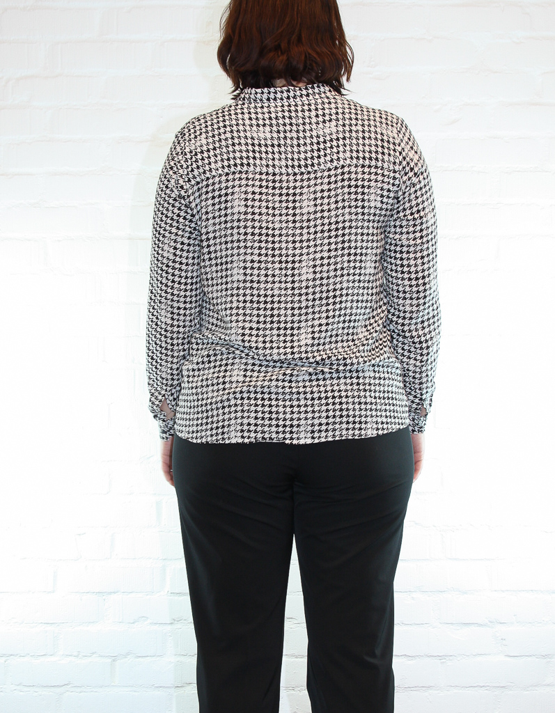En mjuk viskos-skjorta med snyggt, svartvitt mönster.